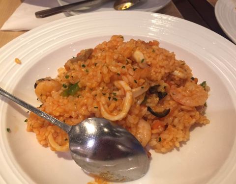 ...意面29元,味道还不错,就是没吃饱,孩子点了海鲜烩饭,也没见多少海鲜,小份南美肉香荟披萨还好吧