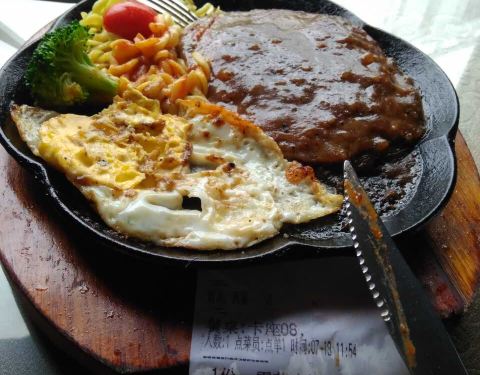 还不错,只不过七分有点像十分熟。店员还说蛋在路上,所以我们没吃到蛋