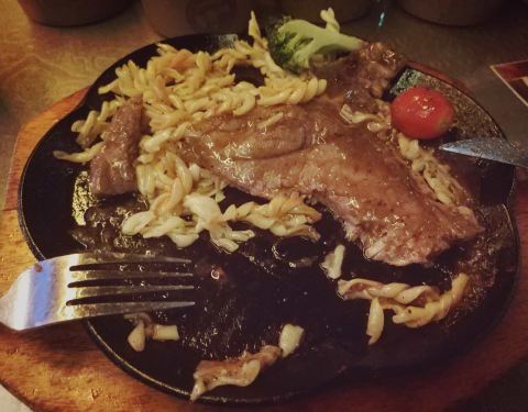 今天人好多,小食吃很快,服务真的很忙碌,但是还不错啦,上小食比较快。牛排就较慢!