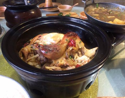 门脸不算大的老店,进门桌子放的都很紧凑,服务员领到一张四人台的桌子。 味道是很不错的,臭鲈鱼:口感很嫩,没有那种臭鼻子的味道,辣度适中,可以接受;坛家当家肉:类似红烧肉的口感,肥肉入口即化,没有油腻感,只是太少啦,下边的豆角太腻,基本没吃;爽口木瓜丝:挺特别的菜,却吃不出木瓜味儿。