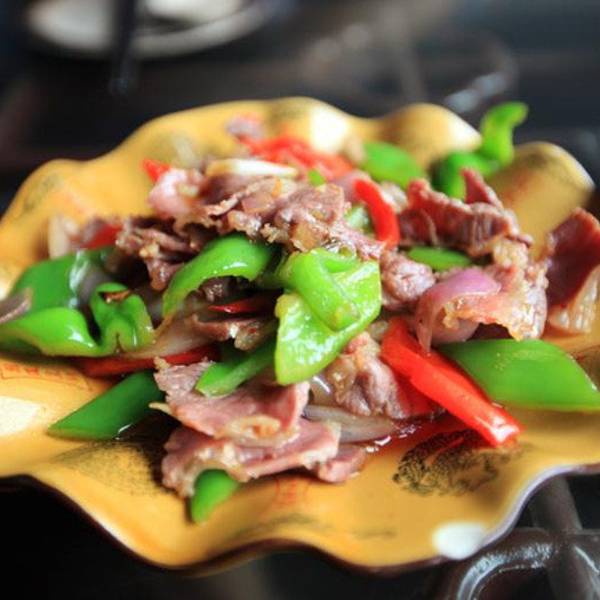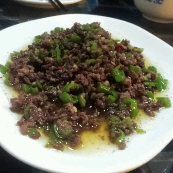 - 不大的才村有很好吃的南诏源私房菜,居然还有大众点评团购。↑小米辣黄牛肉,据说小米辣真的很辣