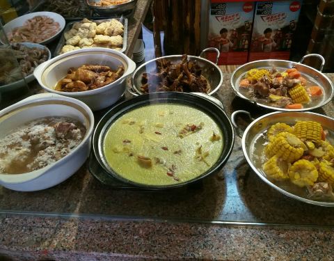 三人点了鸡汤,番茄牛筋,咸菜笋干,皮蛋。味道很好,297元(含一瓶啤酒和饮料)。由于提前预定了,不然要等位很久,推荐一下,还会去吃。
