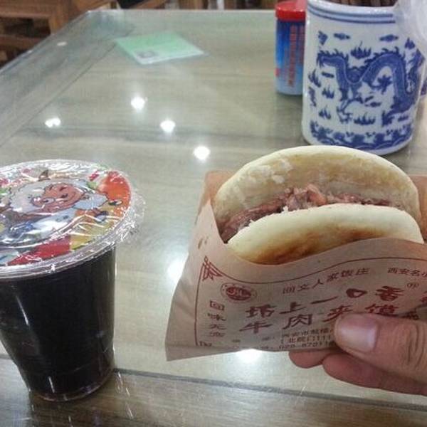 ...肉,不是想象的红色的腊牛肉,肉酥烂好吃,馍干脆不柴,混着浓浓的肉汁,十分好吃,强烈推荐,小的7