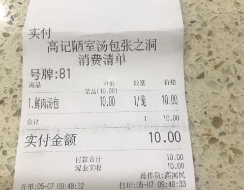 高记陋室汤包,店址坐落于复兴路地铁站附近,店面不大,顾客不少,墙上挂着《陋室铭》的行书条幅,“以和为贵”的匾额,具有文化意味,与小店好生意的情形非常贴合,充分展示了店家的经营理念。早饭只点了6个一笼的汤包,皮薄馅多,咸淡适中,轻咬一口,鲜美的汤汁爆入口中,不愧是推荐菜排行榜排名第一的。一笼汤包价格10元,性价比也不错。