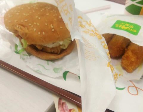 汉堡挺喜欢的,就是觉得分量好像比较小。然後还有不够热。夹着的炸鸡有点凉。。。