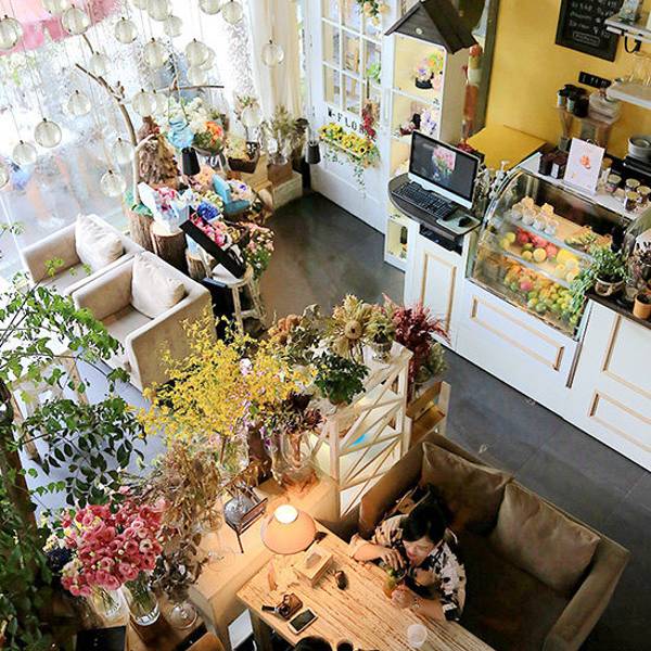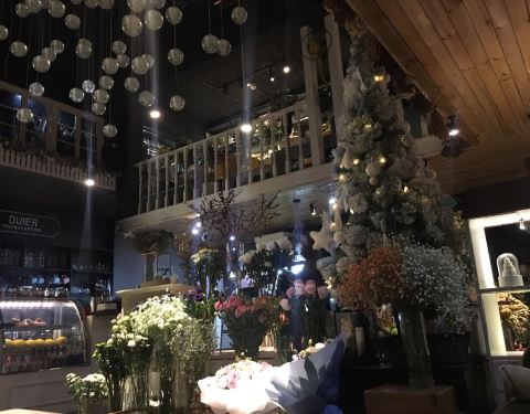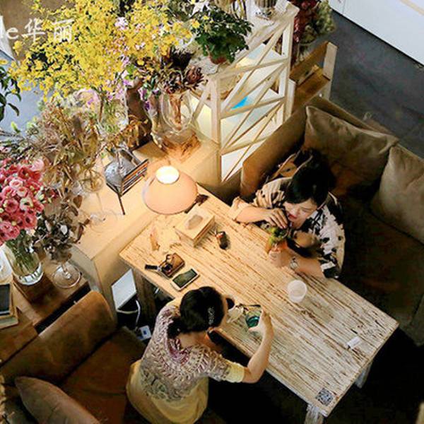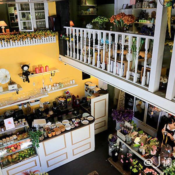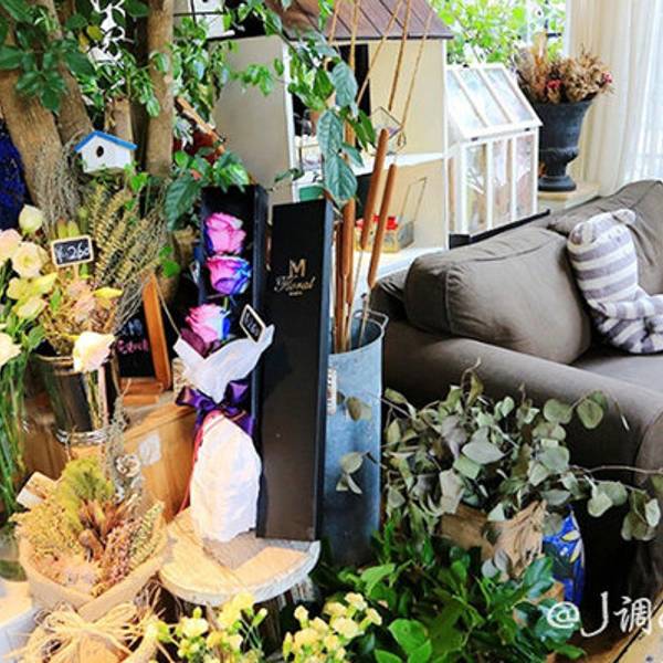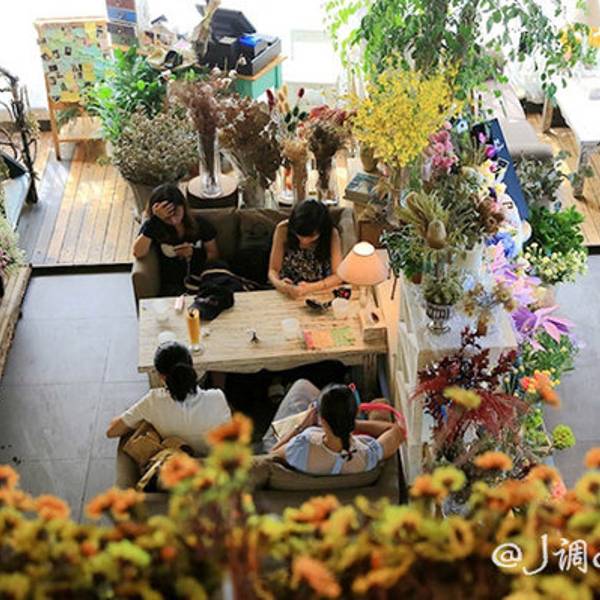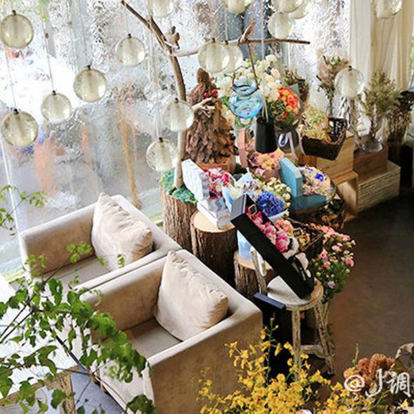 环境还好,也是一家花店,一楼四处摆满了鲜花,二楼有些氛围灯,点些饮品,休息一下,情调还是有的,...