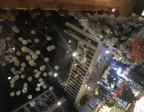 - 环境还好,也是一家花店,一楼四处摆满了鲜花,二楼有些氛围灯,点些饮品,休息一下,情调还是有的,...