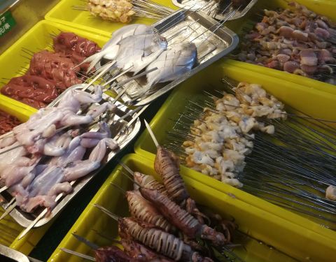 烧烤的确不错,烤海肠,烤鸟贝是他家的特色,羊肉串一般,炖的海鱼还行,海鲜很新鲜,晚上吃个海鲜烧...