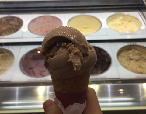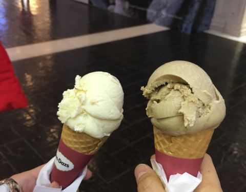 坐着休息一下 找了这家连锁冰激凌店 有新出的口味 价格和国内差不多 顶多低个汇率 有免费柠檬水提供 奶茶味的冰激凌醇香丝滑 好吃哒