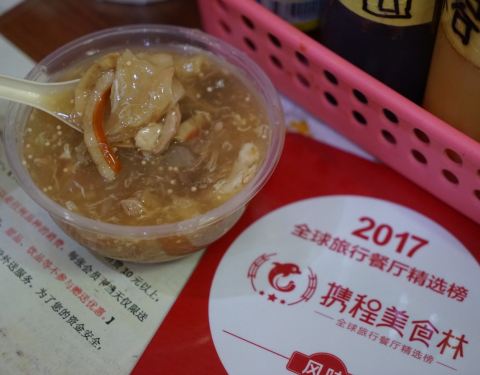 这家看似不起眼的小吃店在广州可是名声大噪,环境普通,但美味不可抵挡食客们的热情。食盈碗仔翅独创海鲜碗仔翅,花容月貌翅、万象更新翅等,里面都有元贝、花胶、蟹子等食材,用温火熬制,特别考验厨师对火候的掌握度,每一碗都充满了爱意。