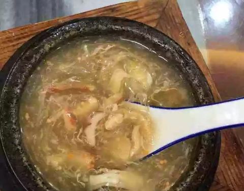整体口感软糯黏稠,营养足足的,性价比还不错。食材有鱼翅,花胶,北极贝,海胆蓉