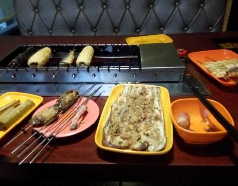食物的味道,卫生都可以,炉子烧烤速度很快!茄子,贝壳类的都是弄好端上来,玉米是熟的,牛肉丸也是熟的。环境一般,有空调。价格小贵,两人一百多,食量都小。