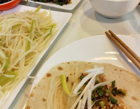 - 夹在热饼里面非常好吃,酸辣土豆丝味道有点重,京酱肉丝中规中矩不错,河虾值得表扬非常美味,很酥很...