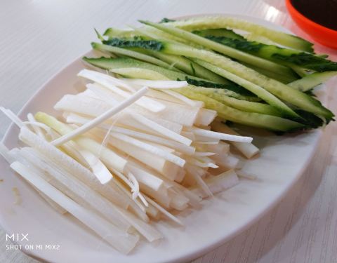好吃极了,一会就剩下残羹剩饭,哈哈,孩子也爱吃土豆丝,就是春饼上的慢。还是很喜欢的!!!