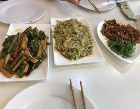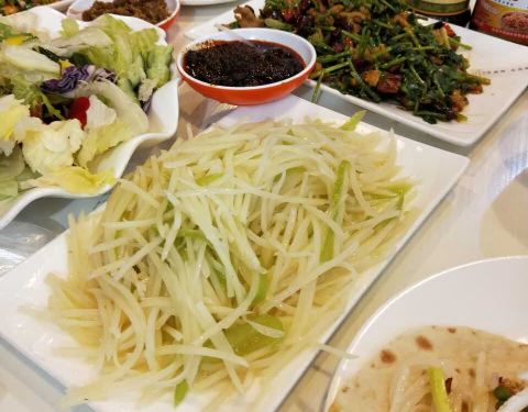 夹在热饼里面非常好吃,酸辣土豆丝味道有点重,京酱肉丝中规中矩不错,河虾值得表扬非常美味,很酥很...
