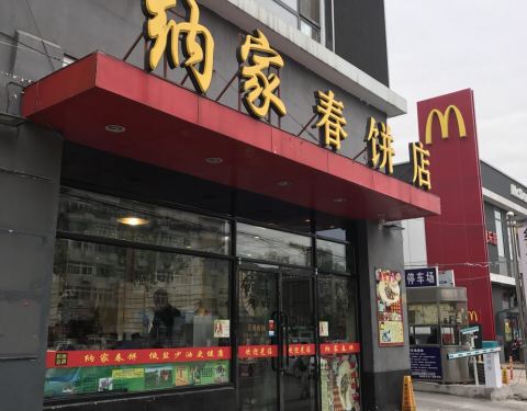 满园春饼(水游城店)装潢古色古香,喜庆吉祥。从装潢到服务无不流露着满族风情。服务员口中讲着各种吉祥话,满堂欢声笑语。烤鸭肉肥皮脆,春饼薄而有韧性。东北大拉皮上桌极富表演色彩,酱料调制得很独特,回味无穷。炒合菜卷春饼是店里必点的菜。二小胡同素烩汤里炸过的饼丝使这道汤别有风味