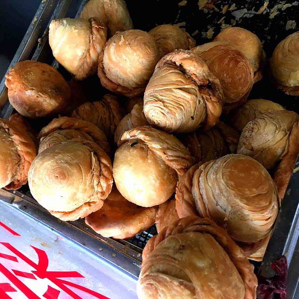 思北最好吃的是韭菜盒子,这个韭菜盒可跟我们北方人那种像大饺子的韭菜盒完全不同,造型像个小飞碟,还是油炸的,太有深度了。