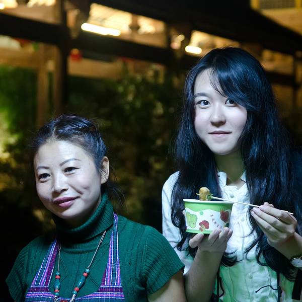 下面介绍个特别热情的阿姨了,女鬼终于到了,没吃饭,所以去找吃的,毛豆腐必然的,阿姨看到我们一个个拿着相机问我们是不是摄影协会的?我们厚脸皮的说是的,然后各种扯皮,哈哈,后来阿姨问我们是不是旅游达人,我们笑称是的,她又说她们和黎阳in巷接待的旅游达人有合作的,免费吃的,哈哈哈,把女鬼激动死了。后来阿姨还跟我们说明天晚上不要吃饭继续来这里吃,这个毛豆腐腌制的还不是很好,她明天带来更好的炸给我们吃,哈哈哈。后来还帮阿姨拉了一单生意,吃饱喝足又带着女鬼去逛逛。
