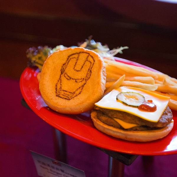 这个夏天,超级英雄除了具备过人的战斗力,更带来无法抗拒的“味”力!香港迪士尼乐园度假区推出了超过20款漫威主题的美食。我们今天中午的午餐就在明日世界的火箭餐厅一饱口福。“英雄汉堡套餐”,钢铁侠在汉堡...