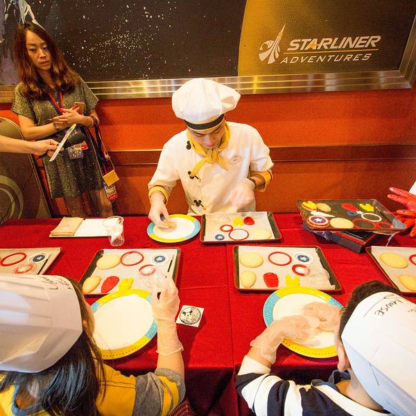 这个夏天,超级英雄除了具备过人的战斗力,更带来无法抗拒的“味”力!香港迪士尼乐园度假区推出了超过20款漫威主题的美食。我们今天中午的午餐就在明日世界的火箭餐厅一饱口福。“英雄汉堡套餐”,钢铁侠在汉堡的表面哦。好看的“蜘蛛侠朱古力慕斯蛋糕”,这么漂亮的蛋糕杯,我是只能拿来看,不舍得吃啊,简直就像艺术品一样。“超级英雄闪亮棉花糖”。还有“超级英雄蒸包”,颜色鲜艳,让人难以下口。“超级英雄啫喱杯”以及“超级英雄朱古力蛋糕”“蜘蛛面具”特饮。色彩鲜艳有活力的漫威主题水果拼盘。开餐了,遇见了一众超级英雄的一天,累并且快乐,此时看到这么多漫威主题美食早就已经听到自己的肚子在叫了,我们一群人坐下来享用美食。“漫威夏日超级英雄”任务危机四伏,特工们要先做足作战准备!“Marvel装备总部”有近300款漫威主题商品,让特工们挑选心水准备。各类《复仇者联盟》,美国队长以及蜘蛛侠的精品登场,服装,文具和玩具应有尽有。最喜欢这个美国队长的小人物,大大的眼睛,Q版的美队。还有各类超级英雄的勋章。咿,看看餐厅的一个角落为了一群人,特别热闹的样子,原来是小朋友们等待着厨师哥哥教他们制作曲奇。为配合“漫威夏日超级英雄”,亲子曲奇DIY将以深受欢迎的美国队长盾牌以及钢铁侠为主题。制作曲奇的步骤其实很简单,非常适合小朋友自己亲手完成,只需要把制作好的模板曲奇都粘在一起即可。完成品就是这样的,美国队长的盾牌小小个的萌化了。PS:每逢周六日晚,在迪士尼好莱坞酒店的“米奇厨师餐厅”享用自助晚餐的小朋友,都可以免费体验该活动哟。同时还有漫威特色彩绘,使用的颜料都是玉米粉做的,不会伤害皮肤,小朋友还可以选择进行面部彩绘,选择自己想要的超级英雄图案,酷酷地走到人群中,展示自己的特别标志,尽情投入漫威的世界玩耍啦!