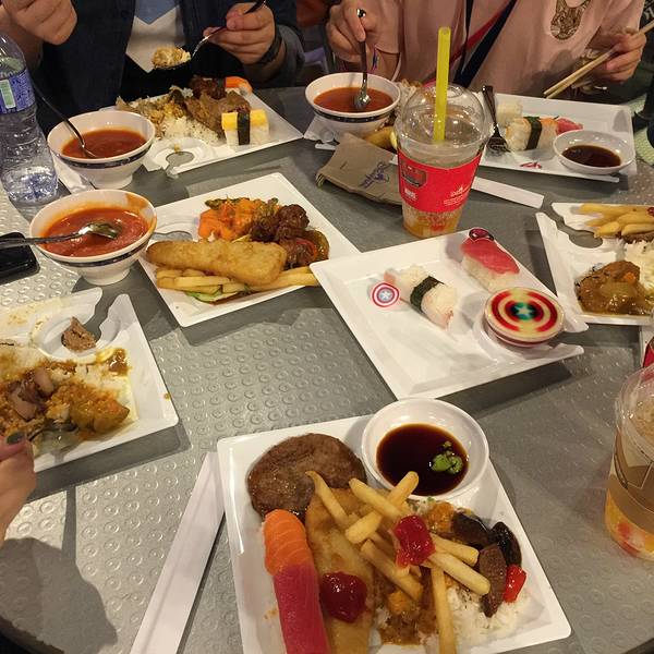 环境和餐品设置都很迎合迪士尼的风格和小朋友们的喜好。里面的餐食有点类似肯德基麦当劳一类,也有米饭套餐,反正都是套餐。价格比外面贵很多,味道也没法苛责,就是分量还蛮大。时时都是排队。
