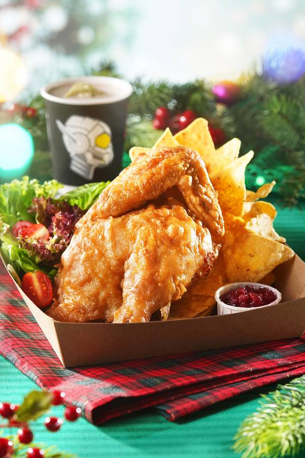 一直都很喜欢明日世界的火箭餐厅,外表炫酷的它里面也提供各种各样美食,这次我们点了应景的火箭圣诞精选套餐。半只炸鸡,搭配酸甜健康的蔓越梅汁,和香甜的芝士玉米片,以及风味十足的杯装蘑菇蒜蓉,一餐下肚元气满满。这个是A Disney Christmas的限定美食,只在活动期间提供哦