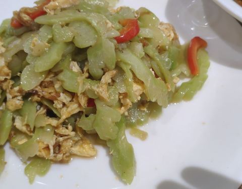 虽然开了空调,但是不怎么管用,坐着吃饭都在飙汗。回锅肉一般,火候不够。水煮肉片和苦瓜炒蛋将就