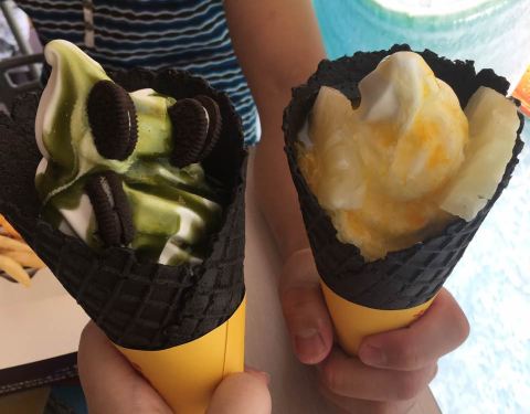 新品甜筒,抹茶奥利奥口味和芒果菠萝味的,我还是比较喜欢吃抹茶味哒!