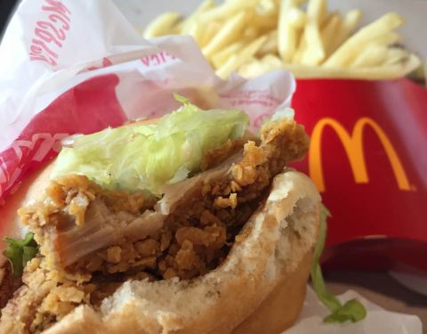 ...了个汉堡中间居然是一片大白菜梆子而且还不新鲜,中间的肉放的的时间太久都不脆了,以后还是吃麦当劳