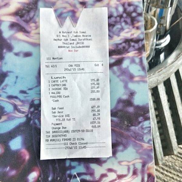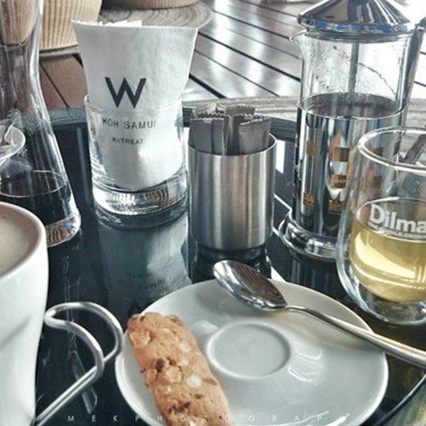 后来才发现租车行离我们刚刚掉头走回去的那里还要往前走一点,从租车行走回度假村起码要十五分钟以上,说好的两三分钟呢 摩托基本上是全新的,说是租车行其实是卖摩托的,因为只有三辆摩托可以出租。交了钱压了护照直奔W酒店。 苏梅租车比清迈贵,200一天,另外加了40的油。 我们住的度假村在邦珀尔海滩,W酒店就在隔壁的湄南海滩,跟着Google Map走很快就到了。原本挺近的路程,因为中途下雨跑去711买雨衣,谁知雨越下越大,然后又是躲雨,浪费了挺多时间,等我们去到时候雨才停止。 不用猜,我们也是慕名去参观莲花池的,但由于刚下过雨,莲花池上的坐垫被拆了,只能到室内坐着观赏。如果是外来人员参观需消费才能进入,没有低消。 地址:4/1 Moo 1 Tambol Maenam,Koh Samui 可直接Google map搜酒店名W Retreat Koh Samui。