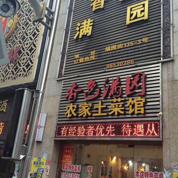 香色满园农家土菜馆位于南京市建邺区福园街135-3号,靠近河西万达广场,对面是希尔顿酒店,地理位置非常好。 香色满园农家土菜馆共有三层,一楼大厅,二楼和三楼有包间。香色满园农家土菜馆是一家环境很好的农家土菜馆,菜品也很丰富,其中的特色菜肴有:农家地锅鱼、乡巴佬农夫烤鱼、乡里乡亲昂刺鱼面皮、扬州清炖狮子头、盱眙十三香龙虾等。 香色满园农家土菜馆的价格还算优惠,譬如我们六个人点了一个糖醋里脊38元、酸菜鱼38元、杭椒猪小肚48元、大碗鹅肠头48元、地三鲜22元、黑木耳15元和菠菜15元,最后人均消费45元左右。 到达香色满园农家土菜馆的公共交通也非常便利:乘坐7路,37路,39路、57路、82路和161路等公交车至江东万达广场站下车,步行300米左右即可到达。