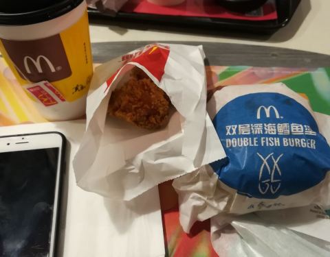 昨天的麦当劳,火爆得不行,因为5元的板烧鸡腿堡,五山店内挤得水泄不通。 因为店面不算大,所以排队也难,店家维持秩序的力度不行啊,还好提前把餐品准备了一大堆,准备为板烧鸡腿堡的客人另辟了一条路。 味道还是那个味道,但是感觉小了不少啊。错觉吗?