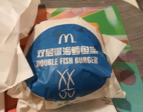 麦当劳超值三件套午餐,双层阿拉斯加鳕鱼堡,吃起来真的是超饱,鳕鱼块外脆里嫩,吃起来口感相当不错,在配上芝麻酱,除了热量超标外,貌似没太多的缺点可以拒绝。