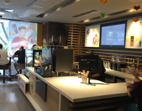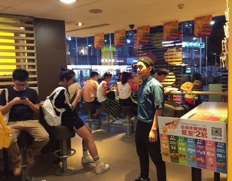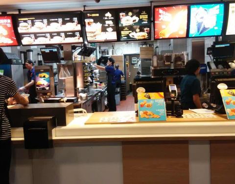 麦当劳的位置靠近岗顶地铁站,门店就在桥边,每次在这里等候广州到深圳或者珠海的校园巴士就会光顾这个店,不过平时看到这个店也是挺无奈的,坐在里面的人很多都不是消费的,基本都是耗时间的人占着座位。免费早餐的时候这里排着长队!