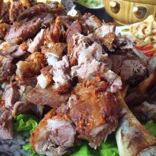 小伙伴呼唤去吃羊,我问哪里,说是这里,太好了,上次点评活动我也报名了可惜没中,这次正好如愿了哈哈~ 具体位置,顺着北路一直开,看到千红莲养老院再往前一点的路边的一排房子里就是了~ 一进门右手边是个鱼池,好像是锦鲤吧,正对面是好些酒坛,大厅左边是散台,右边是包间,包间好几个,还有可以看到对面牧城驿湖的湖景包间很给力~ 点了不少菜,我比较喜欢红烧带皮羊肉,大块的羊肉烧的软烂入味,带皮的羊肉吃起来会多了皮弹韧的口感,肉汁泡饭也是相当的下饭!!推荐^_^ 溜羊肝怎么做得这么好!一点都不老刚刚好,特别推荐^_^ 炒的羊杂和羊血里面加了泡椒,做法好独特,只是我太喜欢羊肝那个了,这2个菜没怎么吃-_-# 烤羊腿没有提前腌制,追求的是原始味道吧!虽然口味清淡但是烤的酥脆焦香的羊腿肉还是很好吃的,取一块慢慢的嚼出它的原始味道~ 还喜欢羊肉蒸饺,一个肉蛋儿的羊肉馅,咬一口,肉汁一不小心从嘴边流了下来~ 这里的羊都是俺老家那边的山羊,没有西北羊那么重的膻味,个头也小一些,能在大连吃到老家的味道真不容易,老家偏僻落后,但是真有太多的值得关注的物产和文化,希望老板生意兴隆!要是能做出老家那样的羊汤就更好了~