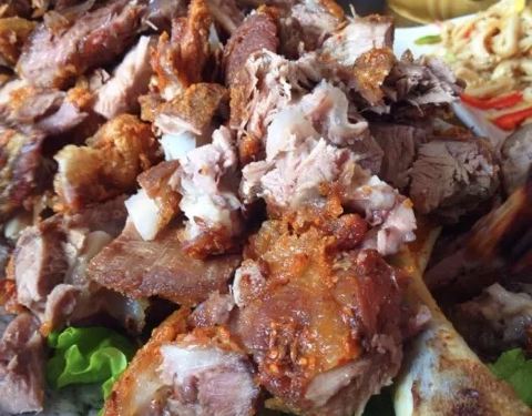 店名:盛美斋天然山羊 地址:旅顺北路前牧亿达春田西500米 餐厅距离市区较远,大约一个小时的车程,具体位置,顺着北路一直开,看到千红莲养老院再往前一点的路边的一排房子里就是了~ 一进门右手边是个鱼池,好像是锦鲤吧,正对面是好些酒坛,大厅左边是散台,右边是包间,包间好几个,还有可以看到对面牧城驿湖的湖景包间很给力~ 点了不少菜,我比较喜欢红烧带皮羊肉,大块的羊肉烧的软烂入味,带皮的羊肉吃起来会多了皮弹韧的口感,肉汁泡饭也是相当的下饭!!推荐^_^ 溜羊肝怎么做得这么好!一点都不老刚刚好,特别推荐^_^ 炒的羊杂和羊血里面加了泡椒,做法好独特,只是我太喜欢羊肝那个了,这2个菜没怎么吃-_-# 烤羊腿没有提前腌制,追求的是原始味道吧!虽然口味清淡但是烤的酥脆焦香的羊腿肉还是很好吃的,取一块慢慢的嚼出它的原始味道~ 还喜欢羊肉蒸饺,一个肉蛋儿的羊肉馅,咬一口,肉汁一不小心从嘴边流了下来~ 这里的羊都是俺老家那边的山羊,没有西北羊那么重的膻味,个头也小一些,能在大连吃到老家的味道真不容易,老家偏僻落后,但是真有太多的值得关注的物产和文化,希望老板生意兴隆!要是能做出老家那样的羊汤就更好了~ 推荐菜品;红烧带皮羊肉,羊肉蒸饺 消费参考:人均80