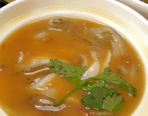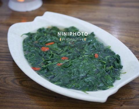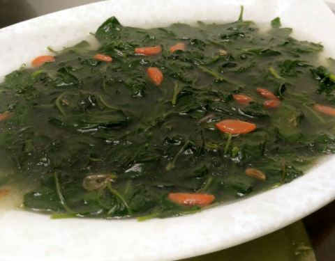 - |鲨鱼丸枸杞叶汤^丸子Q弹,从口感上就能吃出是纯手工制作,配合枸杞叶熬汤喝,非常养身