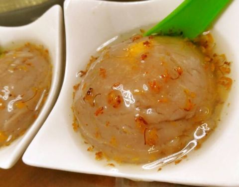 手工褒美芋泥#讨人爱的模样,粉糯细腻的口感,用咸蛋黄做馅,淋桂花糖水,爱了,满分
