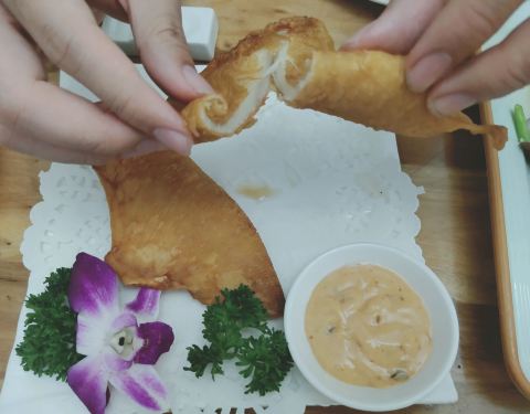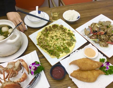 第一次走到他们餐厅门口一看我很惊讶,竟然在岛内也能吃到同安菜。 |鲨鱼丸枸杞叶汤^丸子Q弹,从口感上就能吃出是纯手工制作,配合枸杞叶熬汤喝,非常养身。 |同安煎蟹^还不错,是油煎的,有配上蟹膏那芬芳的香气真是超赞!蟹膏特别的多吃起来特别爽。 |海蛎煎^地道的闽南菜,在厦门旅游必尝菜,独具闽南特色。 |鹞鱼鱼翅^第一次吃到炸的鱼翅,做法独特,口感香脆可口。