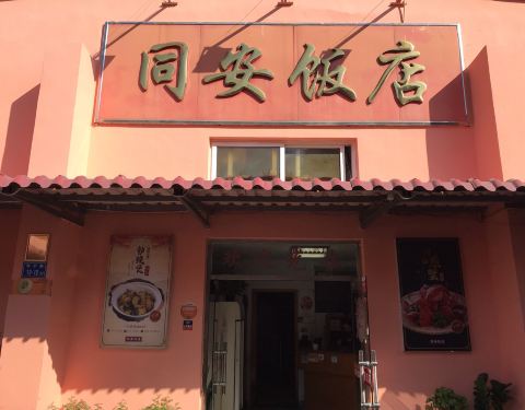 同安饭店,位于东渡六中校区旁,两层的小楼改成的,还有个小院子成为露天卡座,旁边还有个金鱼池。 提前打电话预约,给安排了个小包间。话说不是饭点时间用餐的人还是挺多的。 同安封肉味道还可以,不过作为同安...同安饭店,位于东渡六中校区旁,两层的小楼改成的,还有个小院子成为露天卡座,旁边还有个金鱼池。 提前打电话预约,给安排了个小包间。话说不是饭点时间用餐的人还是挺多的。 同安封肉味道还可以,不过作为同安人还得出口感上的一点点差别。 鲨鱼丸枸杞叶,枸杞叶稍显老了点。 服务态度挺好的,上菜速度也很快。