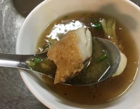 隐身于菜市场里已有八十几年历史的郑记土魠鱼羹,与隔壁的江水号冰品一样,最是台南人记忆深处里的那个味。已经裹上粉炸过的土魠鱼,看起来并不能想象到它的美味。重点就在于加入碗中的那勺汤羹,浓浓的甜甜的,而鱼块外面是脆脆的,里面的鱼肉就像蒜瓣似的可以剥离开来,火候和调味都拿捏的刚刚好