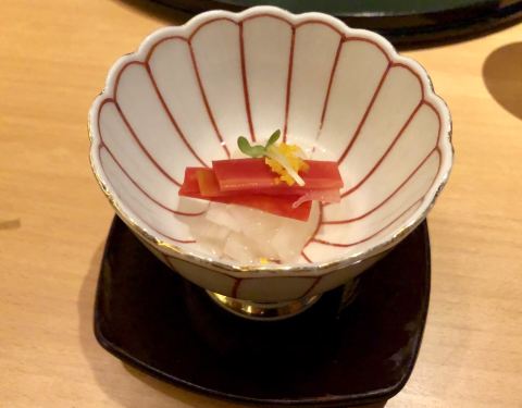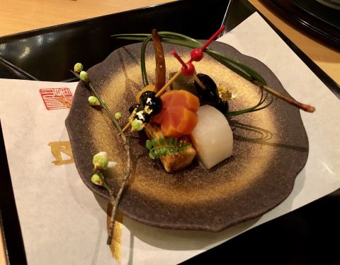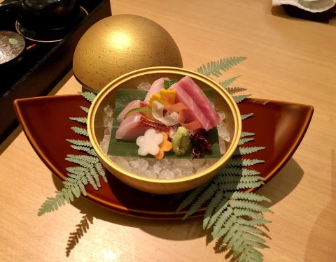每个菜品都是精致的艺术品!三文鱼子配海胆抹茶豆腐(豆腐滑嫩海胆配抹茶甜而不腻很清新),刺身(肉质紧实),特色纸火锅(小坨柚子胡椒酱提鲜味),鱼牛蔬菜蒸物(熟牛肉片入口即化),鲷鱼干贝寿司,凉面,果盘(梅子酸甜可口,哈密瓜蜜一样甜)