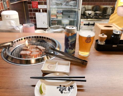 沒去成“胡同”,卻在不遠處,找到了別一家知名燒肉店“乾杯”,好在只需等半個小時。于是決定試試這家,口啤實在不錯。
