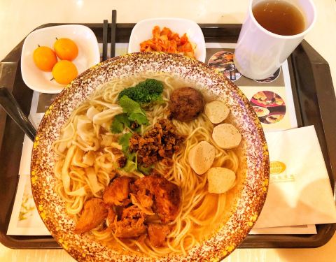 在2楼吃过自助,一楼买过面包,这次来尝试素食,赶上阴历二月十九菩萨生日,人还不少。 有很多选择,最后选择了招牌素面,35元。猴头菇、笋等,笋片薄而爽口。 还有一杯茶、一份泡菜和一份水果。 适合一人食,...