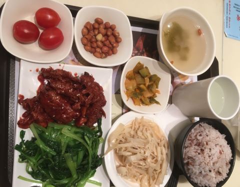 到上海迪士尼乐园游玩,抽半时间到淮海中路和静安寺游玩,正好饭点,到台湾人道素菜馆就餐。点了:人道招牌饭、拌筝子,素包子和素烧麦。 【口味】很好👍 【环境】优雅! 【服务】好👌!点餐,取食快!