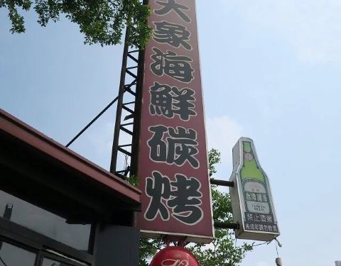 中午大概一点过两点来到这家店,但并没有营业。台南中午都会很热,所以很多餐馆大概1:30后就会午休。这家大象海鲜碳烤晚上生意就很好了,喝点啤酒,吃点烧烤,正是夜晚的节奏嘛