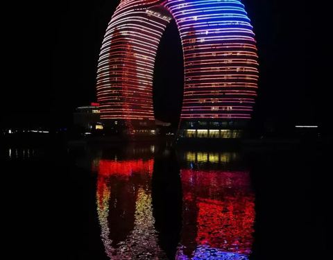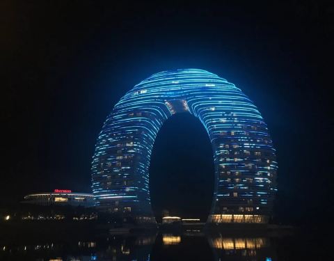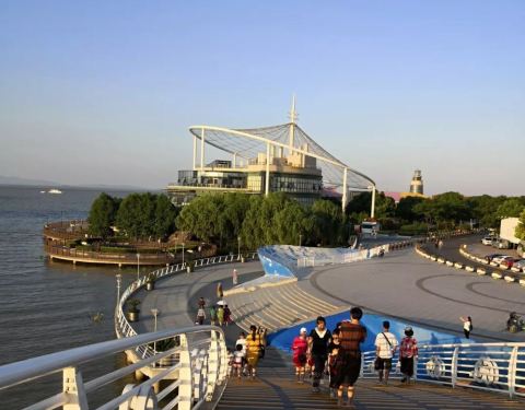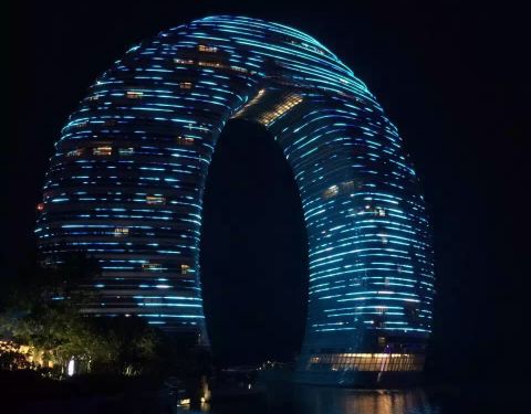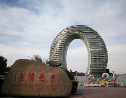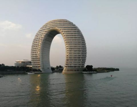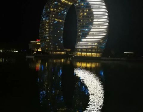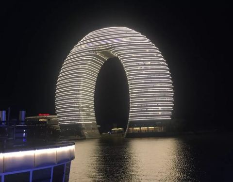 非常惊喜非常意外,太湖畔有了这样一个独特造型的地标,从北一路到湖州喜来登已经快黄昏了,这样最好,可以观日落和灯光效果,极赞!还来不及体验一下店内美食,实话实说。