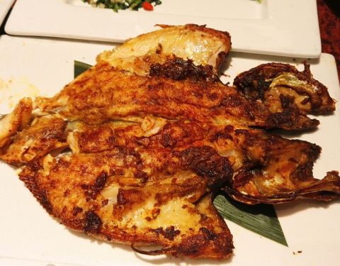 菜品很有特色,最有名的是面包诱惑、火焰虾、绿茶饼,尤其是面包诱惑几乎每桌必点,热腾腾的面包外皮烤的酥脆,中间都很香软,配上一团凉爽甜蜜的冰激凌,好吃到爆表,量还挺大。但是点菜时建议先点其他主菜,快吃完时再加点这份面包,做饭后甜点。否则先上这么好吃的面包马上就吃饱了。火焰虾也是亮点,裹上锡纸的一把虾串,当场点火加热一番,打开后,鲜香欲滴的火爆虾就等你入口了