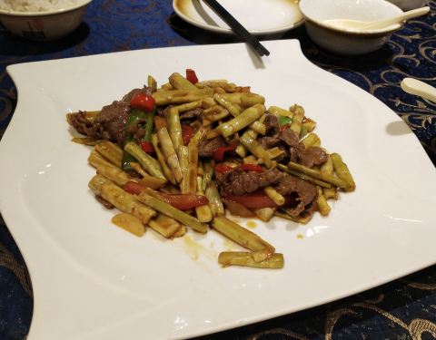 吊烧鸡和小米椒笋炒牛肉不错,汤的份量有些少,吐槽的是点的菜服务员从厨房端出来后不是直接送到客人桌上,而是放在吧台由另外的服务员(就坐大厅的)端上,如果当时服务员刚好忙的话,那你就看着你点的菜放那或自已去端回桌,我就自己端了一个莱!