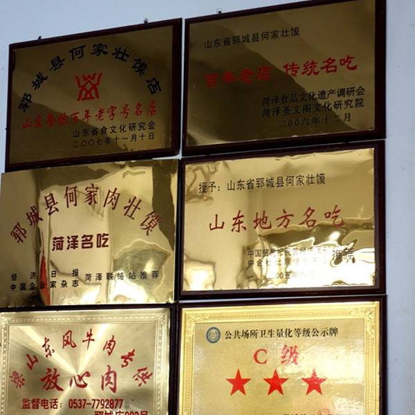 先推荐当地的美食——郓城何家壮馍 二两左右的牛肉馅,被和好的面包裹起来,擀成长方形,下油锅,经过先煎后炸再煎的过程,一个壮馍就做好了,外酥里嫩,层次分明,肉馅到边到沿,一层面一层肉。每个五两五的重量...
